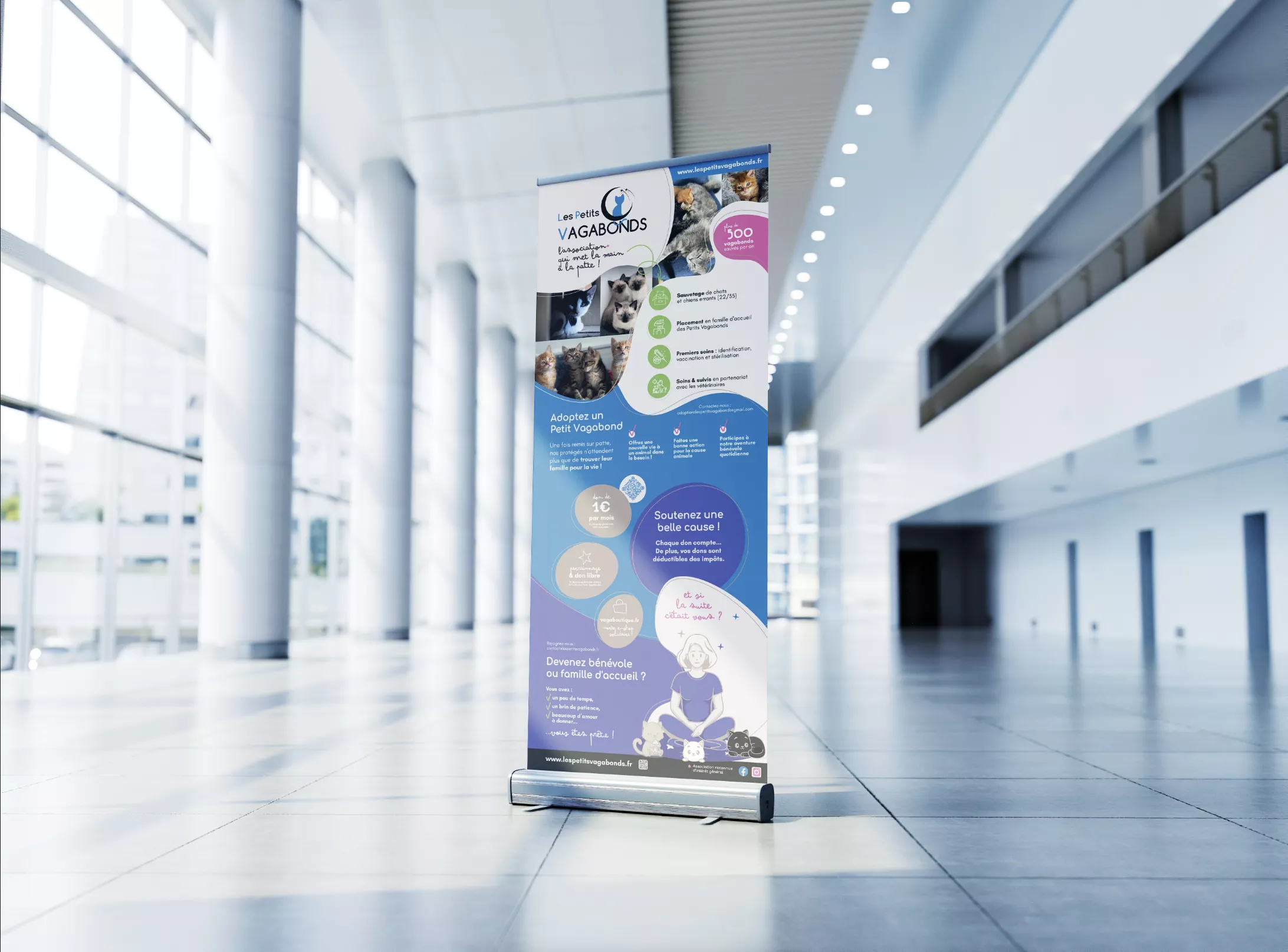 Et comme une belle identité visuelle ne vit pas que sur un écran, on a décliné tout ça sur plusieurs supports print : flyer, kakémono, affiches…